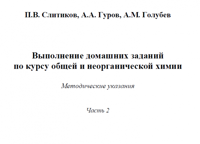 Книга: П.В. Слитиков, А.А. Гуров, А.М. Голубев - Выполнение домашних заданий по курсу общей и неорганической химии - Часть 2
