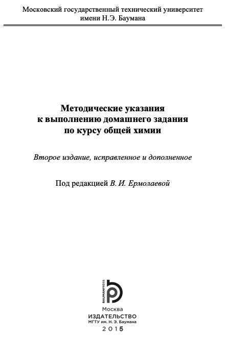 Главная » Учебные материалы » Химия » Книги » МГТУ им. Н.Э.Баумана » Несколько классов/семестров » В.И. Ермолаева - Методические указания к выполнению домашнего задания по курсу общей химии