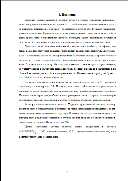 Для студентов МГУ им. Ломоносова по предмету ХимияСинтез ванадилфосфатов состава ... и их рентгенографическое исследованиеСинтез ванадилфосфатов состава ... и их рентгенографическое исследование