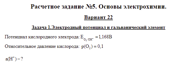 ДЗ: Типовой расчет №5 (Основы электрохимии), 22 Вариант (2015) вариант 22