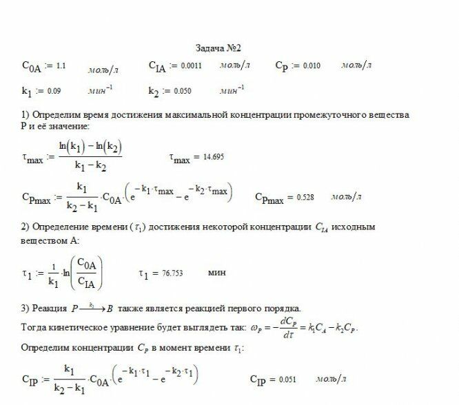 ДЗ: Вариант 1 - Типовой расчет №4 - Кинетика простых реакций вариант 1