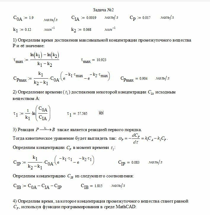 ДЗ: Вариант 19 - Типовой расчет №4 - Кинетика простых реакций вариант 19