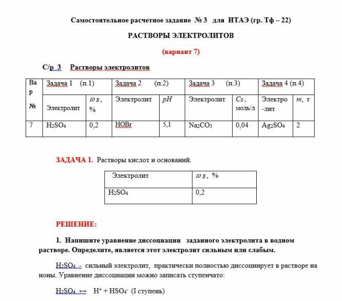 ДЗ: Вариант 7 - Типовой расчет №3 - Растворы электролитов вариант 7