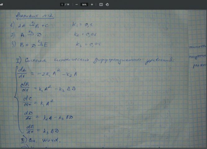 ДЗ: Вариант 12 - Типовой расчет №4 - Кинетика простых реакций вариант 12