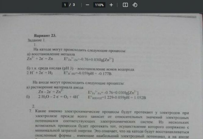 ДЗ: Вариант 23 - Типовой расчет №5 - Электрохимические процессы вариант 23