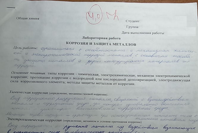 Цель работы — изучение протекания процессов электрохимической коррозии металлов в различных средах и методов защиты металлов от коррозии.