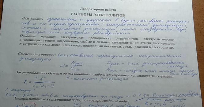 Цель работы — изучение процессов, протекающих в водных растворах электролитов: электрической проводимости, электролитической диссоциации, растворимости малорастворимых электролитов, гидролиза солей.Практическая часть
