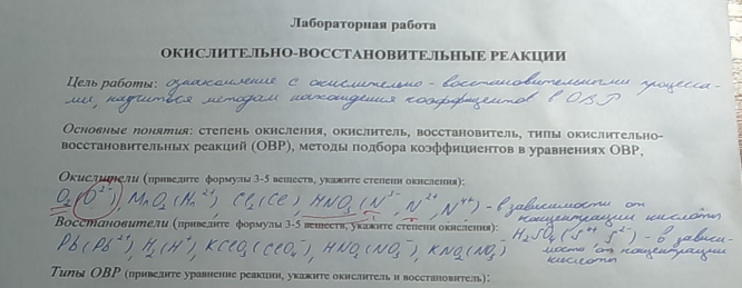 Цель работы — ознакомление с процессами окисления и восстановления и овладение методами нахождения коэффициентов в уравнениях окислительно-восстановительных реакций.Практическая часть