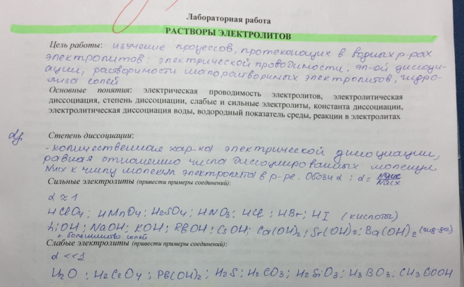 Цель работы — изучение процессов, протекающих в водных растворах электролитов: электрической проводимости, электролитической диссоциации, растворимости малорастворимых электролитов, гидролиза солей.
