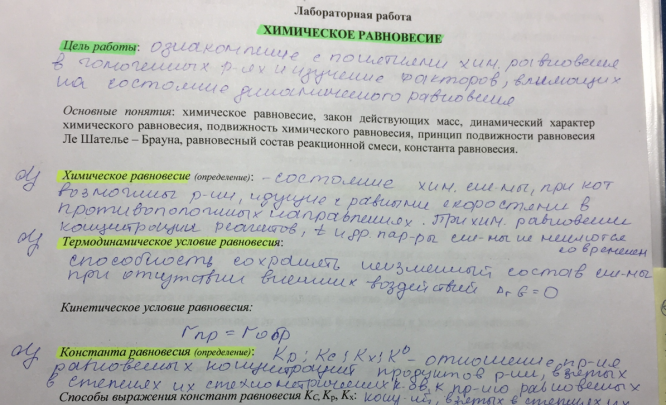 Цель работы — ознакомление с понятием химического равновесия в гомогенных реакциях и изучение факторов, влияющих на состояние динамического равновесия.Практическая часть