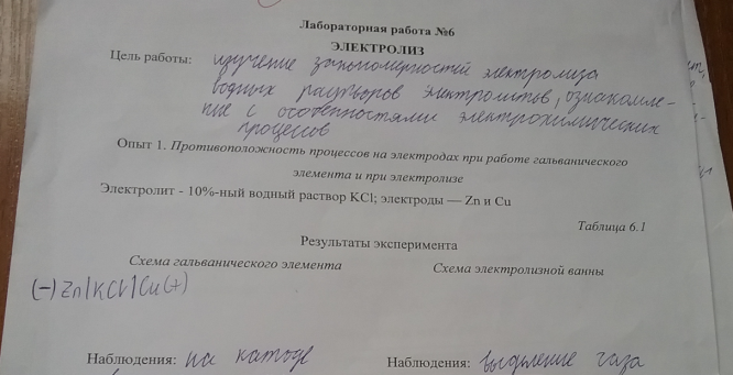 Опыт 1. Противоположность процессов на электродах при работе гальванического элемента и при электролизе