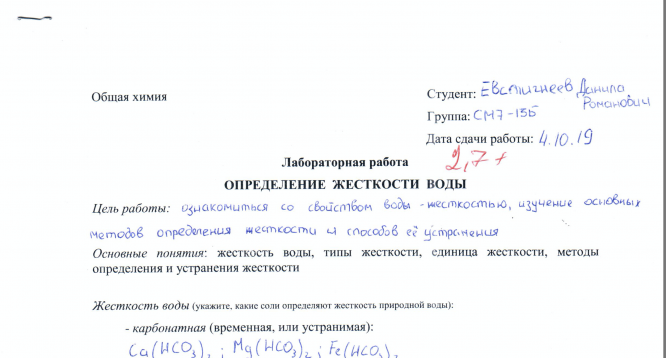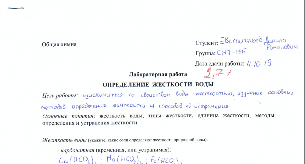 Для студентов МГТУ им. Н.Э.Баумана по предмету ХимияОпределение жесткости водыОпределение жесткости воды