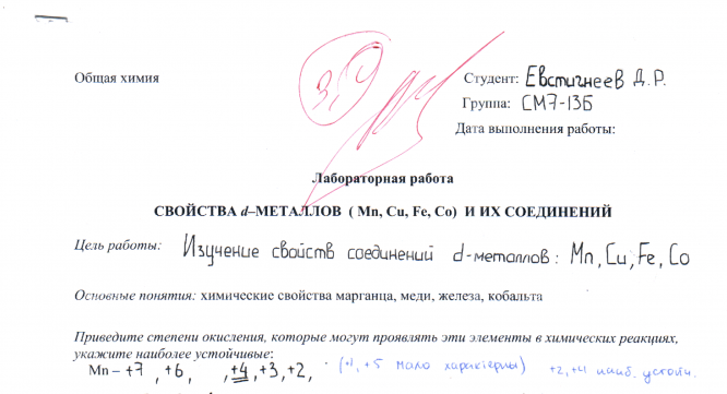 Лабораторная работа 5: Химические свойства d-металлов (Mn,Cu,Fe,Co)