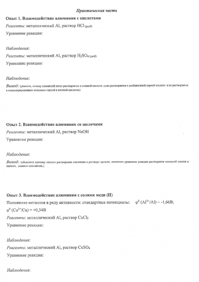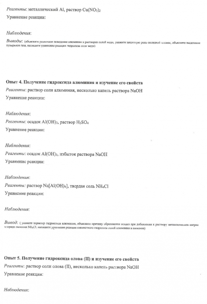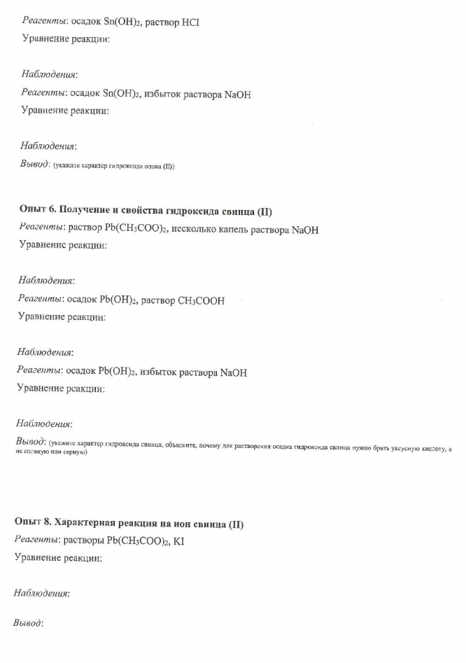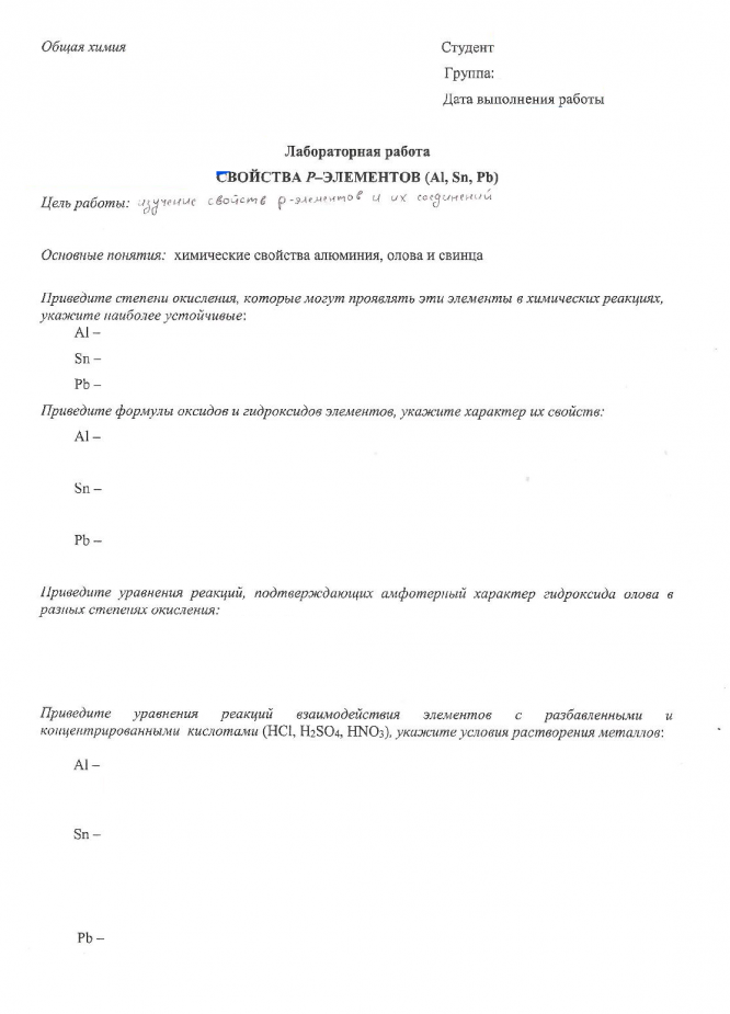 Лабораторная работа 6: Химические свойства p-элементов (Al,Sn,Pb)