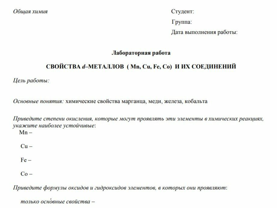 Готовая ЛР Свойства d-металлов лаба на 5 из 5 баллов, проведены все опыты + теор.часть вначале +защита лр бонусом.