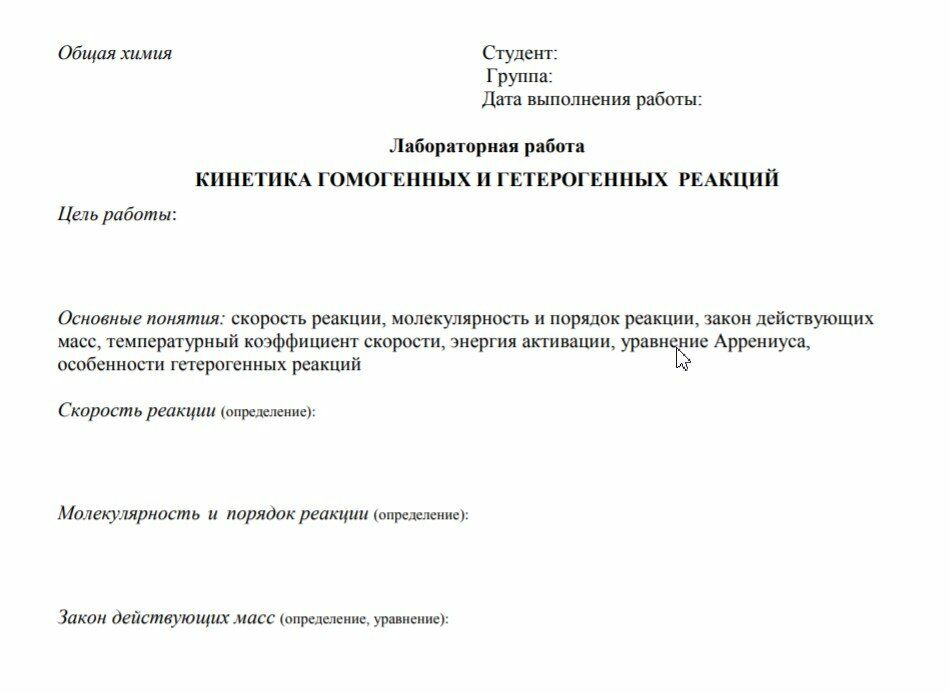 Лабораторная работа 8: Кинетика гомогенных и гетерогенных химических реакций