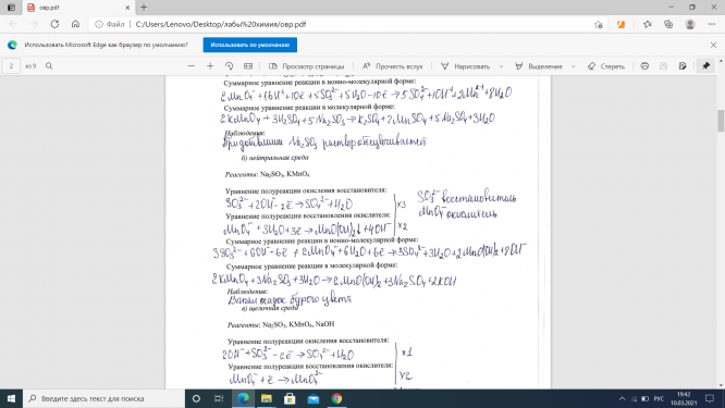 Лабораторная работа 3: Окислительно-восстановительные реакции