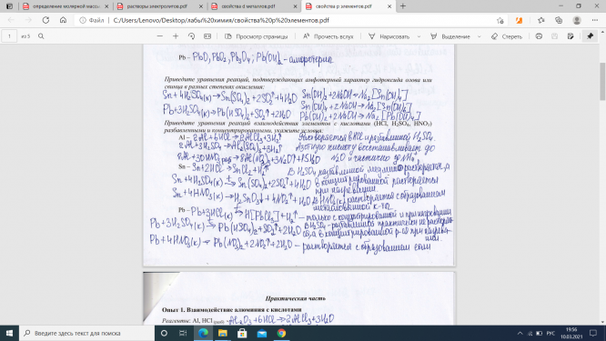 Лабораторная работа 6: Химические свойства p-элементов (Al,Sn,Pb)