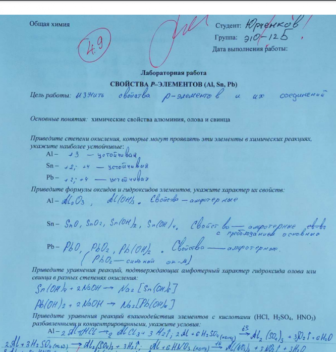 Лабораторная работа 6: Химические свойства p-элементов (Al,Sn,Pb)