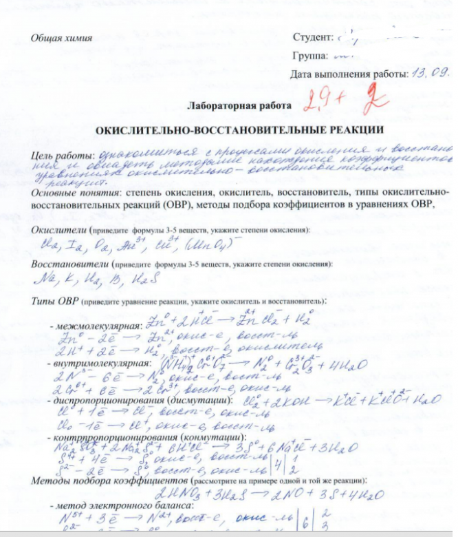 Лабораторная работа 3: Окислительно-восстановительные реакции