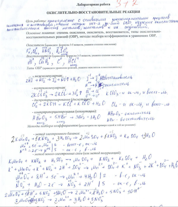 Лабораторная работа 3: Окислительно-восстановительные реакции