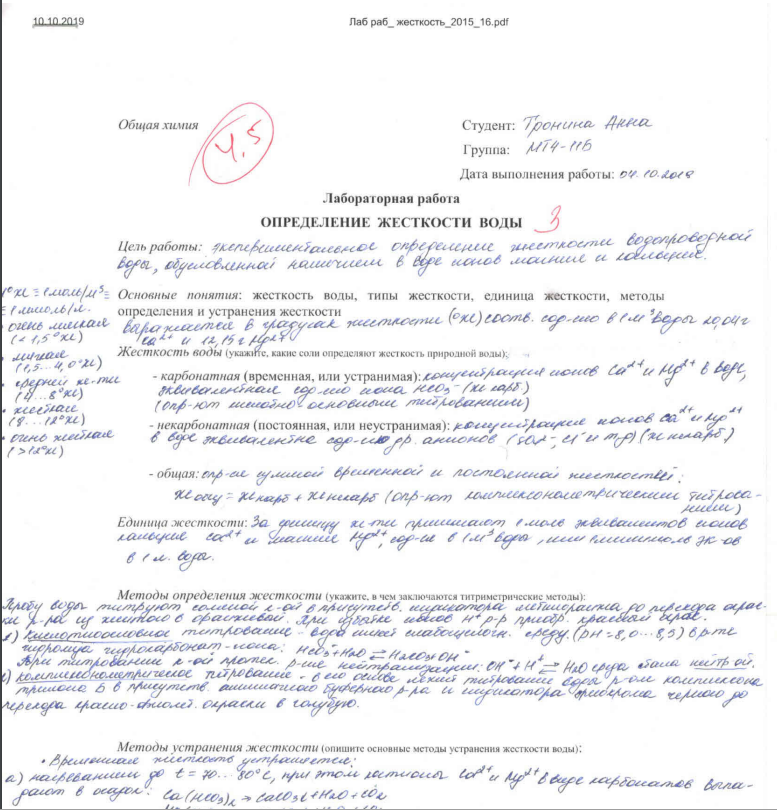Для студентов МГТУ им. Н.Э.Баумана по предмету ХимияОпределение жесткости водыОпределение жесткости воды
