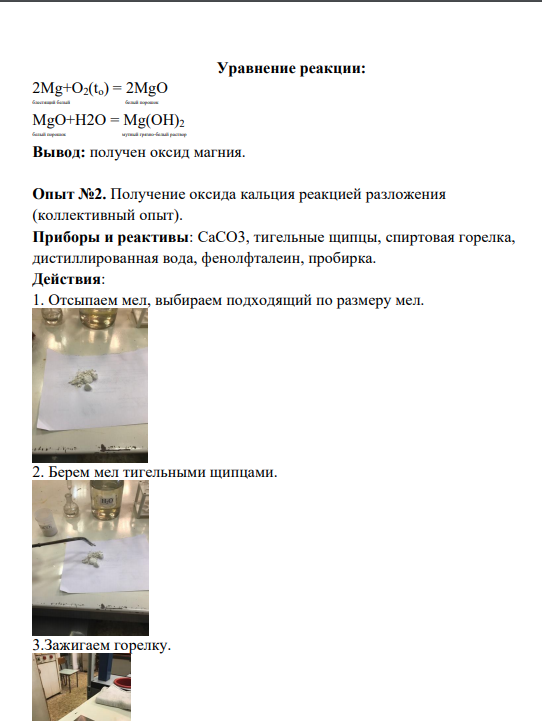 Цель работы: ознакомление с важнейшими классами неорганических соединений: оксидами, гидроксидами, солями, способами их получения и некоторыми свойствами.
