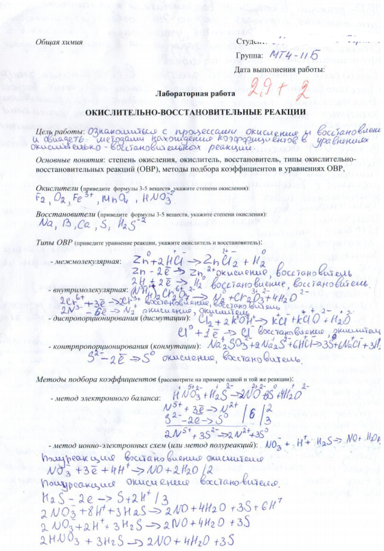 Лабораторная работа 3: Окислительно-восстановительные реакции