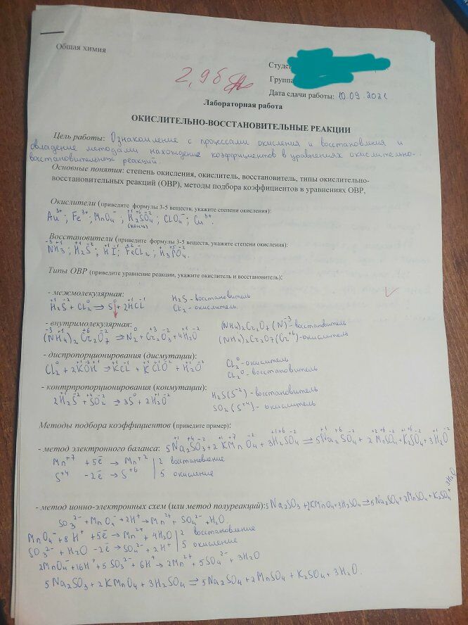 Лабораторная работа 3: Окислительно-восстановительные реакции