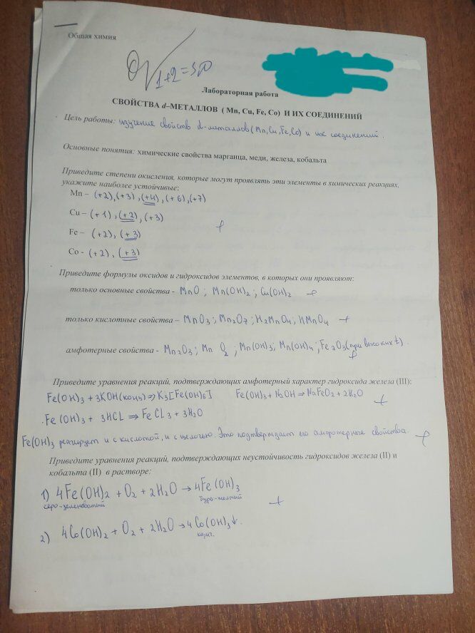 Лабораторная работа 5: Химические свойства d-металлов (Mn,Cu,Fe,Co)