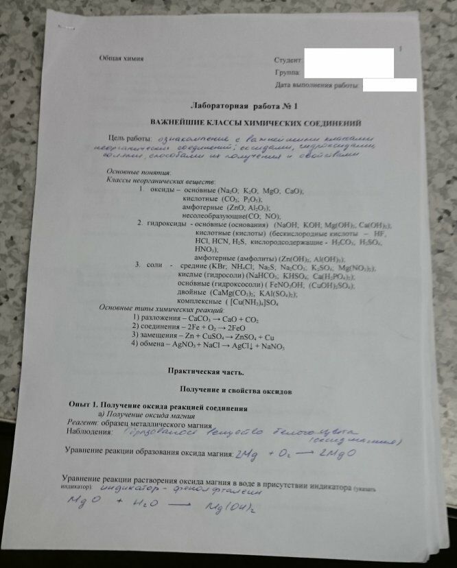 Лабораторная работа 1: Важнейшие классы химических соединений