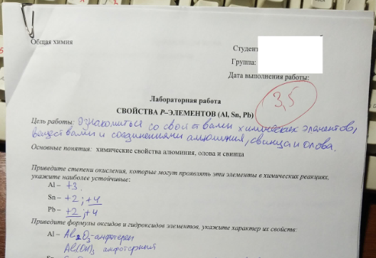 Лабораторная работа 6: Химические свойства p-элементов (Al,Sn,Pb)
