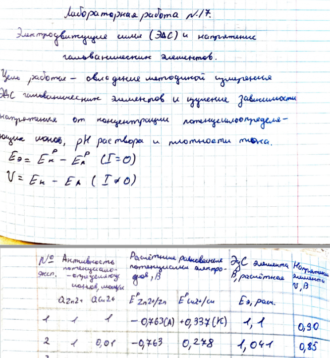 Главная » Учебные материалы » Химия » Лабораторные работы » НИУ «МЭИ» » 1 семестр » Номер 17 » ЭДС и напряжение гальванических элементов
