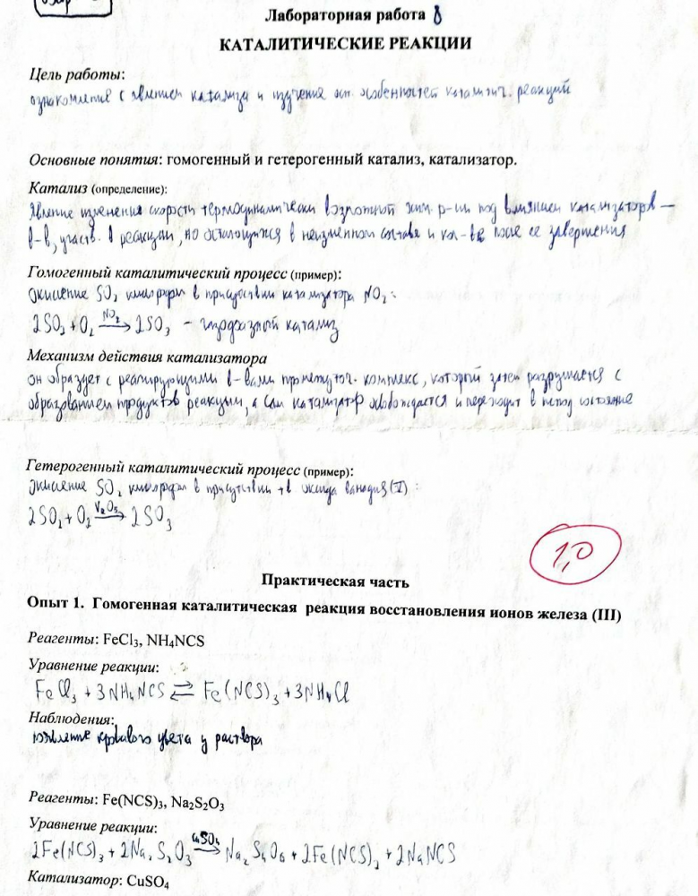 Лабораторная работа 9: Каталитические реакции