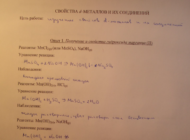 Лабораторная работа 5: Химические свойства d-металлов (Mn,Cu,Fe,Co)