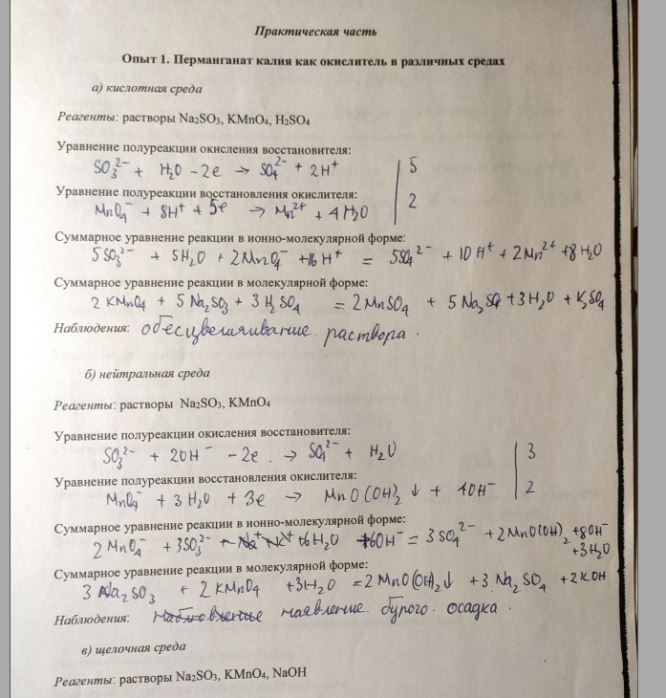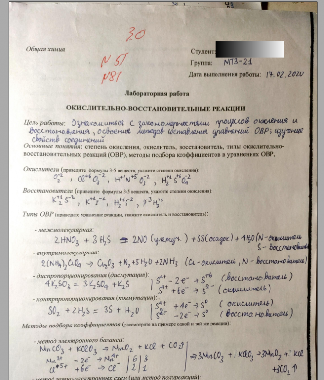 Лабораторная работа 3: Окислительно-восстановительные реакции