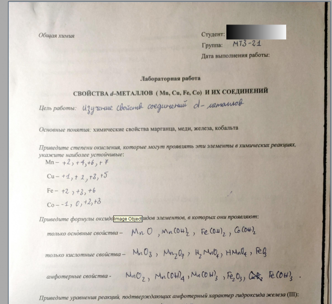 Лабораторная работа 5: Химические свойства d-металлов (Mn,Cu,Fe,Co)