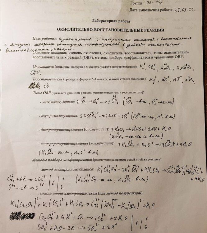 Лабораторная работа 3: Окислительно-восстановительные реакции