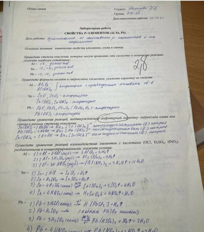 Лабораторная работа 6: Химические свойства p-элементов (Al,Sn,Pb)