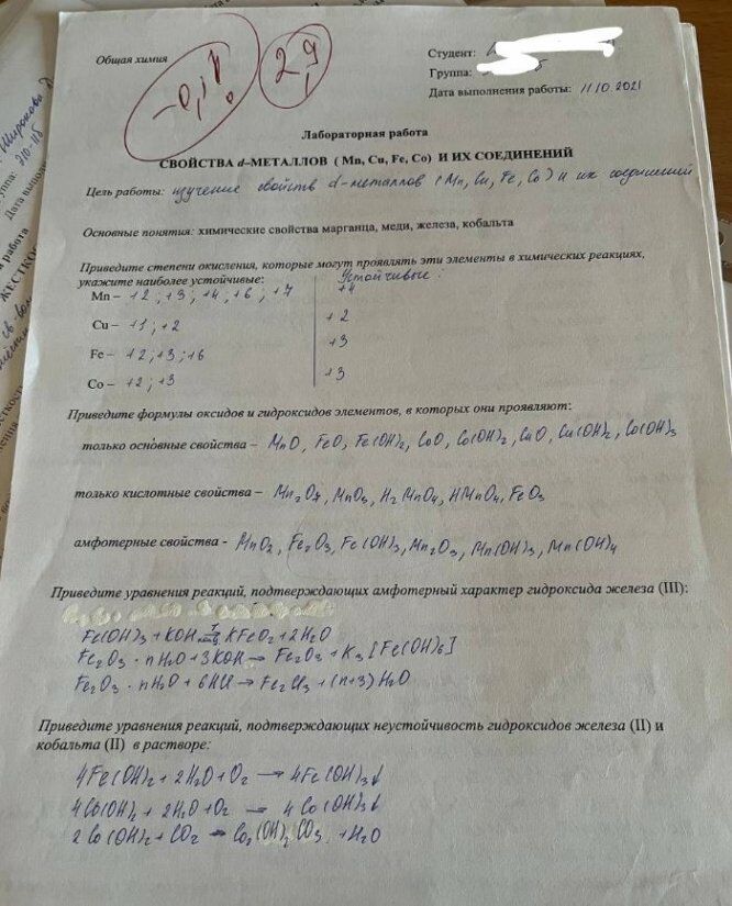 Лабораторная работа 5: Химические свойства d-металлов (Mn,Cu,Fe,Co)