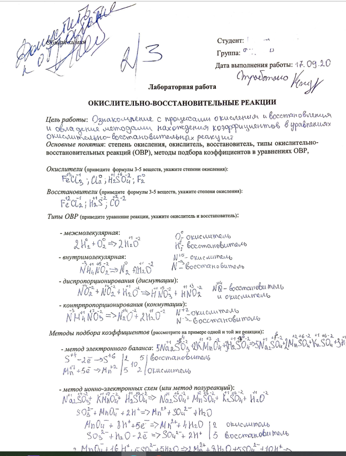 Лабораторная работа 3: Окислительно-восстановительные реакции