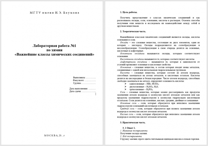 Лабораторная работа № 1. Важнейшие классы химических соединений (WORD).