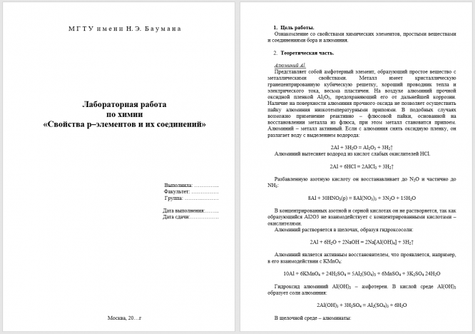 Лабораторная работа. Свойства p–элементов и их соединений (WORD)