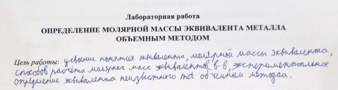 Лабораторная работа 2: Определение молярной массы эквивалента металла объемным методом