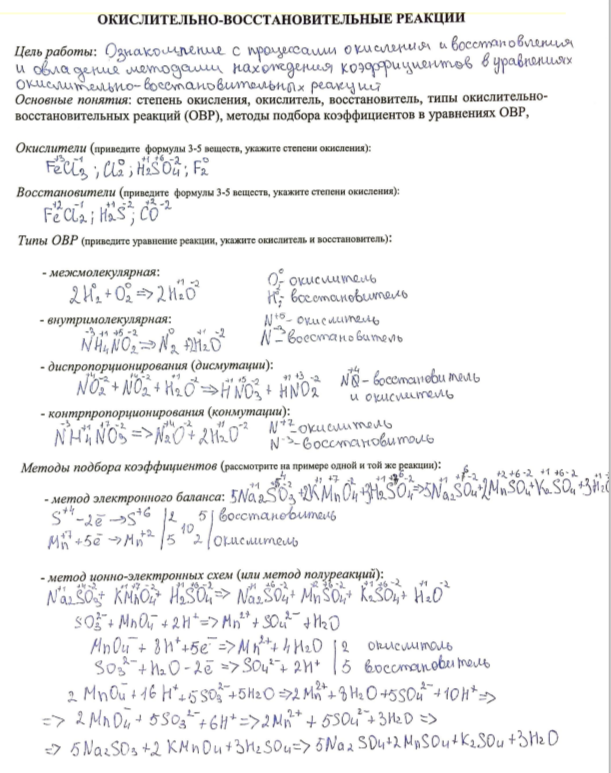 Лабораторная работа 3: Окислительно-восстановительные реакции