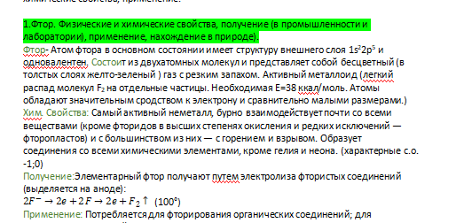 • 1. Фтор. Физические и химические свойства, получение (в промышленности и лаборатории), применение, нахождение в природе).