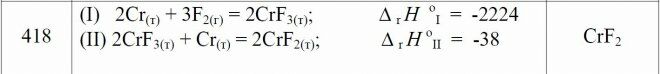 Задача 418: Задача 418:В задачах (415-427) по заданным термохимическим уравнениям рассчитайте стандартную энтальпию реакции