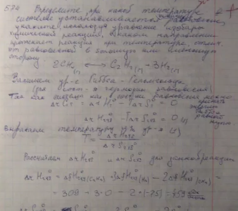 Задача 574: Задача 574:В задачах (557-580) определите, при какой температуре в системе устанавливается химическое равновесие,