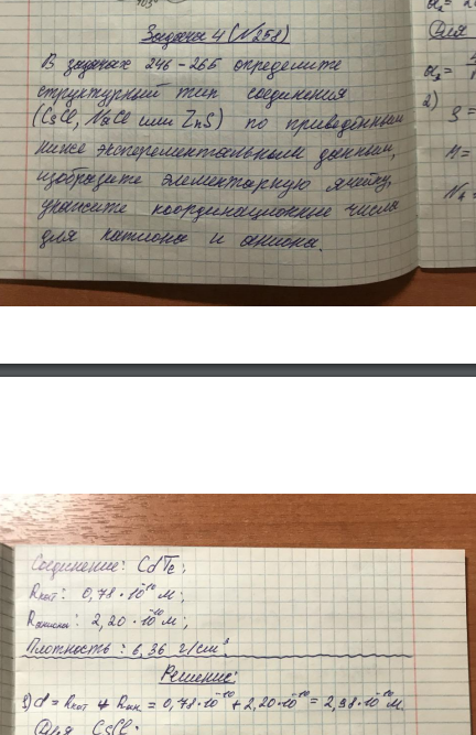 Задача 258 В задачах 246–265 определите структурный тип соединения (СsС1, NaCl или ZnS) по приведенным ниже экспериментальным данным, изобразите элементарную ячейку, укажите координационные числа для катиона и аниона.
