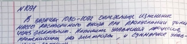Задача 1091 В задачах 1080 – 1092 определите изменение массы растворимого анода при пропускании тока через электролит. Напишите уравнения процессов, протекающих на электродах, и суммарное уравнение реакции.